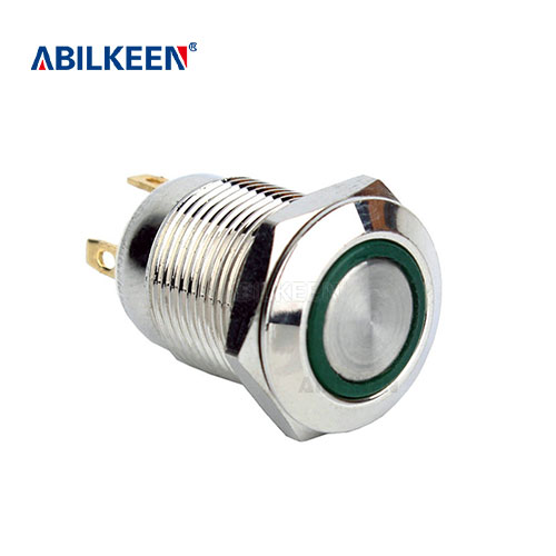 Momentary Type: This push button momentary type is a push button, push and Hold, ON; Release, OFF. Switch Type: Four terminal breakpoints slow moving contact; Contact Configuration: 1NO; Switch: 2A/36VDC; The Front Shape: Flat/High Round; Mounting Hole Size: 12mm / 0.47