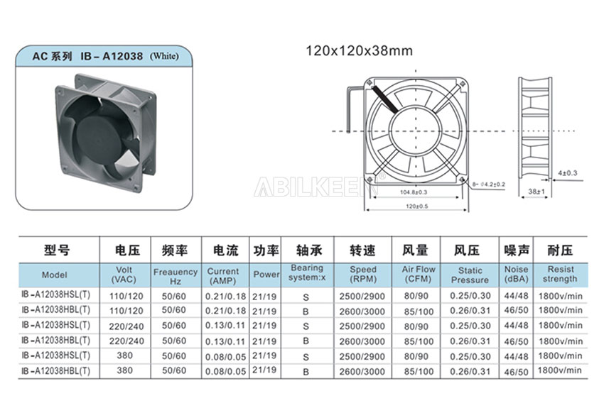 IB-A12038 120mm 110v/115v/220v/230v/380v AC Axial Fan 120x120x38 (4.5 inch) 50/60hz Compact 12038 Cooling Fan With 7 blades